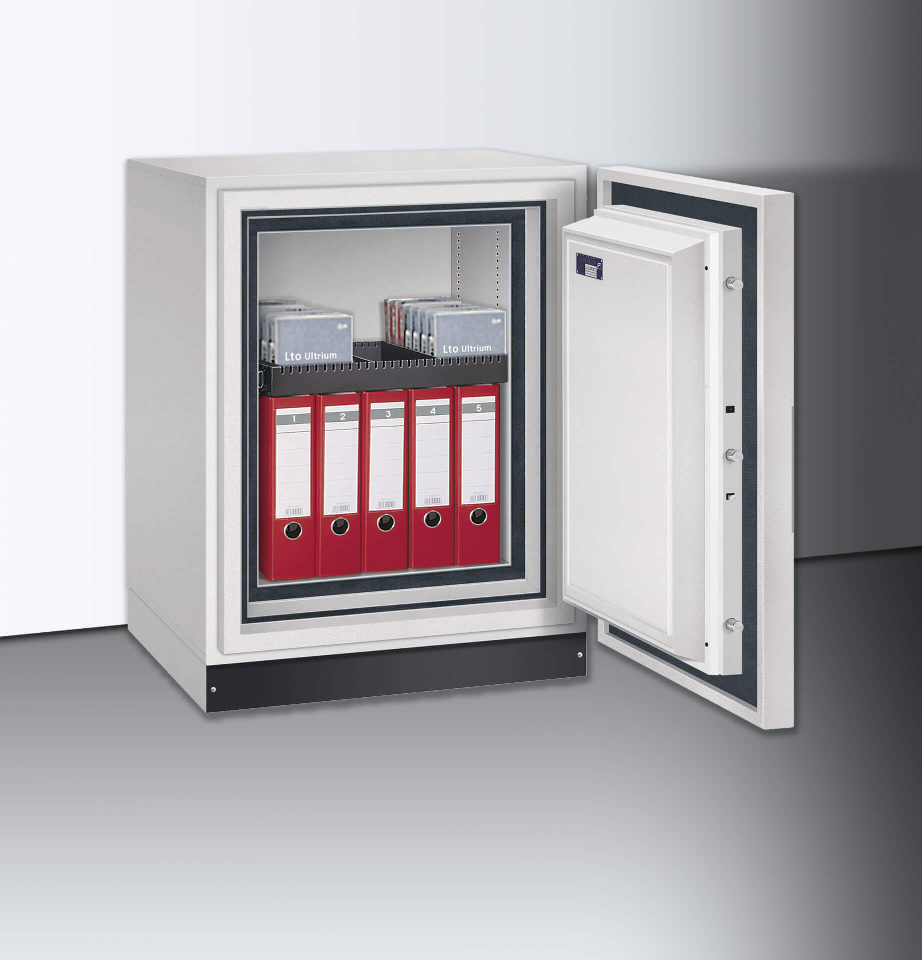 - ECB-S zertifizierter Feuerwiderstand nach EN 1047-1 S120DIS (120 Minuten Daten (magnetische Träger))