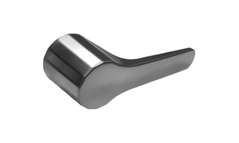 Klappgriff in drei Varianten: Ring in ABS matt chrom, Griff Metall matt chrom (hier abgebildet), Ring ABS schwarz, Griff Metall matt chrom und Ring ABS schwarz, Griff Metall matt chrom, eingelassene Montage. Der Klappgriff ist ausgerüstet mit einer 8 x 8 mm Vierkantspindel als Riegelwerksantrieb. Die Spindel hat eine Gesamtlänge von 160 mm.
