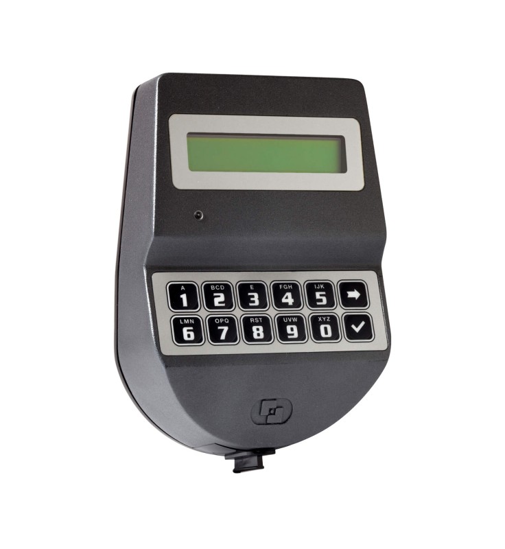 Leichte Handhabung für niedrig platzierte Tresore bei gleichzeitigem Einsichtschutz durch die oben liegende Tastatur ist der Vorteil dieses Bedienteils. Die Eingabeeinheit verfügt über einen Kontakt für elektronische Schlüssel (Dallas Key) und ein integriertes Batteriefach.